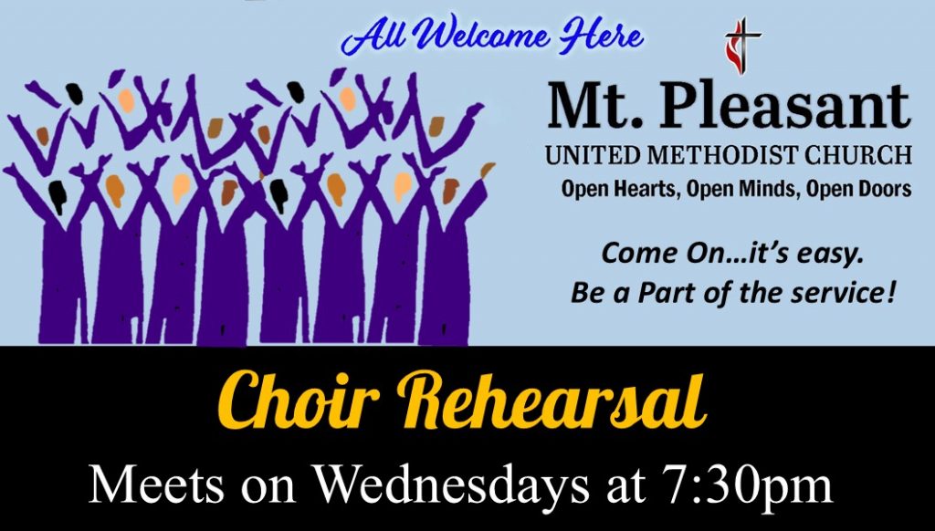 Adult Choir meets Wednesdays at 7:30pm in the Sanctuary. All voices are welcome. The choir brings songs of praise and thanksgiving to The Lord on behalf of the congregation each Sunday as well as special events such as combing with Walkersville UMC for the Easter Cantata!